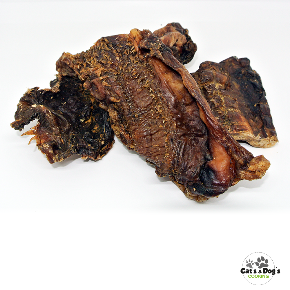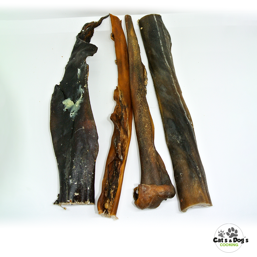 La beef box contient : 1 trachée entière, 6 oreilles (2 natures, 2 soufflées, 2 poilues), 1 plaque de peau, 1 stick de peau, 200g de lèvre, 1 corne, 1 sabot, 2 museaux avec poils, 3 lamelles.