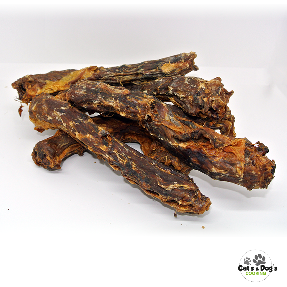 Friandise 100% naturelle, séchée à basse température. Cette friandise hautement digestible et hypo allergénique convient parfaitement aux chiens les plus sensibles. Plus gros que le cou de poulet, cette friandise convient aussi bien aux petits chiens qu’au plus grands. Les os du cou de canard sont plutôt fins et s’effritent facilement ce qui est sans danger pour votre chien.