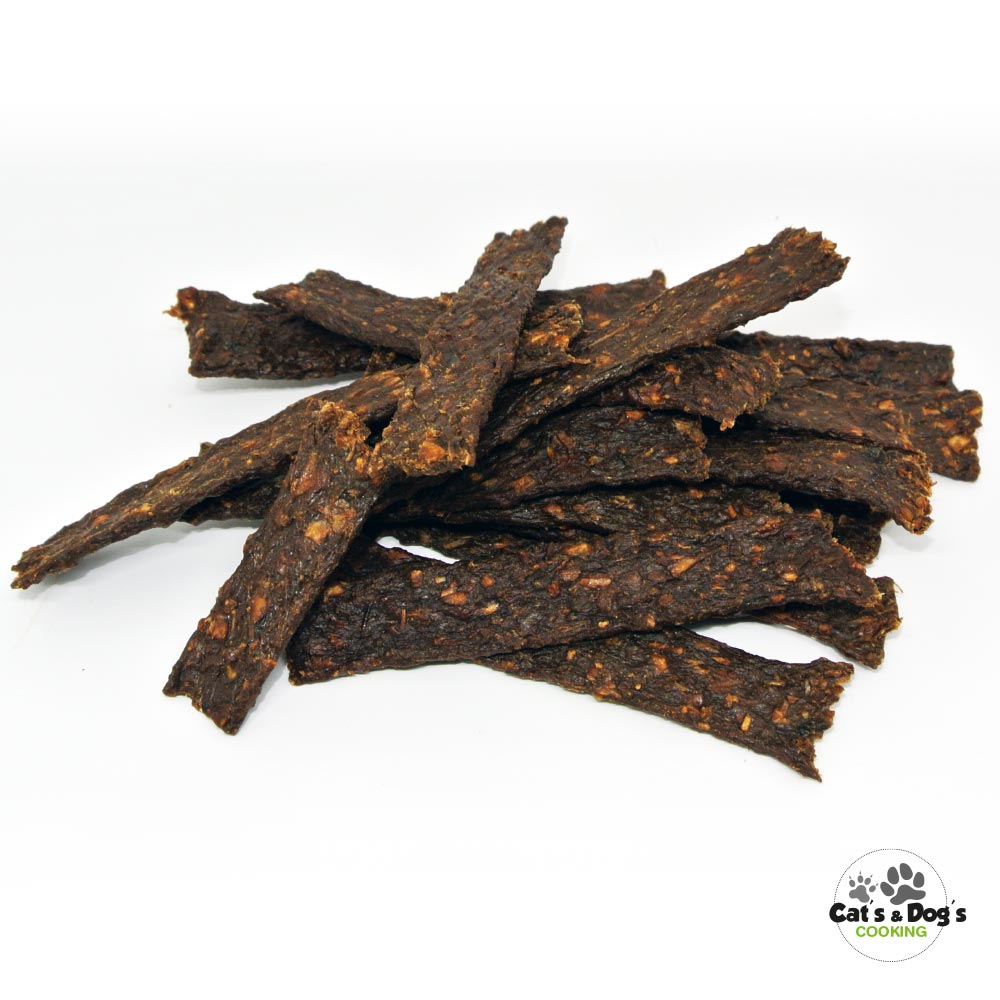 Friandises 100% naturelle, séchées à basse température. Snack délicieux  pour tous! 100% poisson. Ces lamelles de viande sont de texture assez souple et peuvent être coupées en petits morceaux pour donner en récompense à votre chien, lors de ses séances d’éducation. Elles peuvent aussi être données entières comme encas. Dans tous les cas, elles seront appréciées par vos poilus.